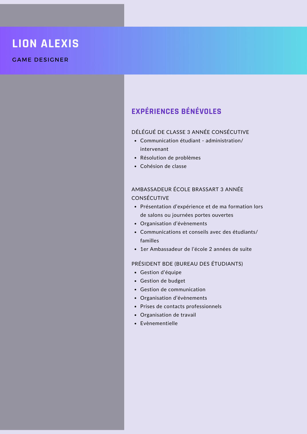 Game designer graduated from the Brassart school.